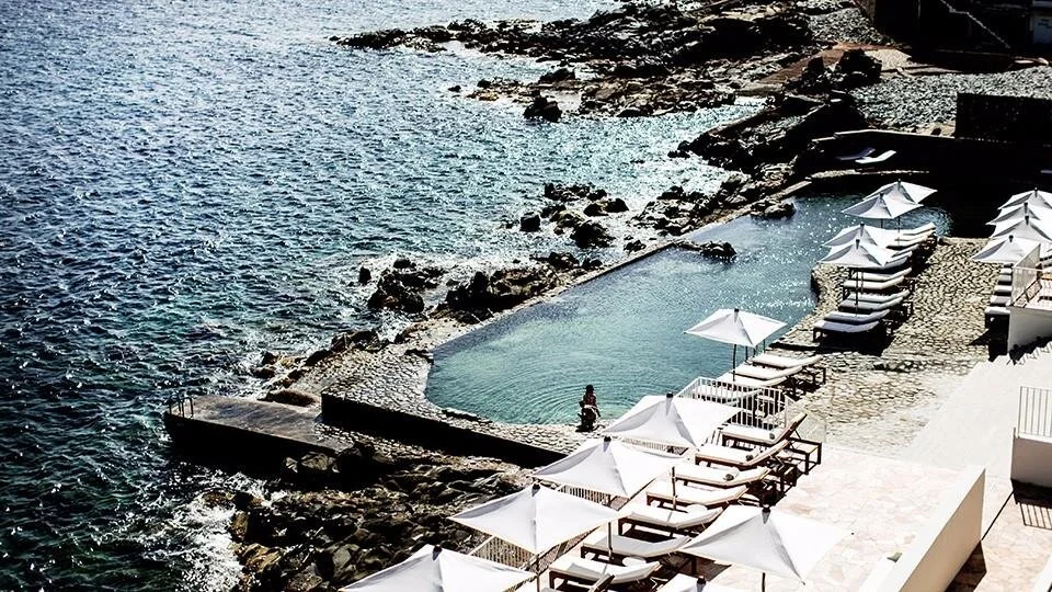 Though I don’t see myself heading back to Italy this year, hypothetically if I were, Mezzatorre on the island of Ischia is where I’d go. Given my commonly held love for the Amalfi Coast, Ischia intrigues me as it is just west of Naples and offers a similar setting to the towns along the Amalfi Coast or Capri, just with less crowds. A win win! Home to natural thermal waters and set within 17 acres of pine wood forest, this historic watchtower turned boutique hotel offers guests a multitude of health and wellness opportunities, as well as seaside relaxation along the Tyrrhenian Sea. Pink parasols and cushions give the grounds a retro charm, and both restaurants have breathtaking views and plenty of the delicious food you travel to Italy for.